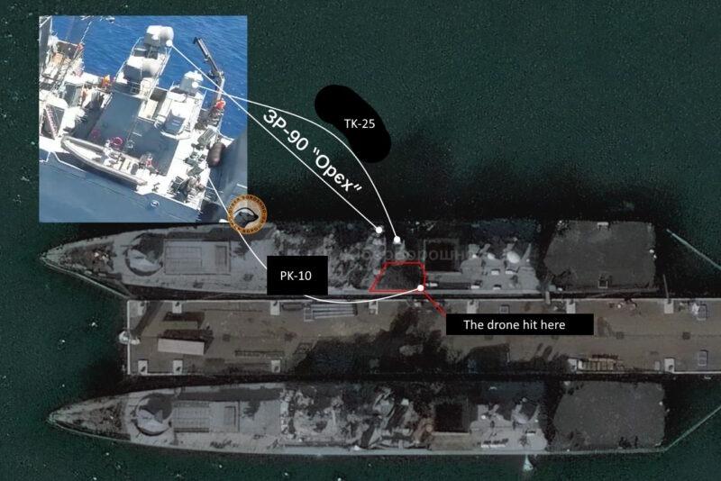 Flota rusă din Marea Neagră este limitată la Novorossiysk. Amenințate de o multitudine de nave de suprafață fără echipaj (USV), drone subacvatice (AUV) și drone aeriene (UAV), mijloacele de luptă ale acesteia ies rareori din port. Submarinele se scufundă adesea la cheiurile lor pentru a-și reduce vizibilitatea în fața dronelor.