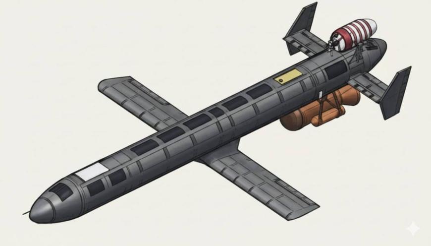 Această viteză, combinată cu o masă la decolare de 850 kg și o rază de acțiune de 950 km, transformă vehiculul într-un hibrid între o dronă de atac și o rachetă de croazieră low-cost.