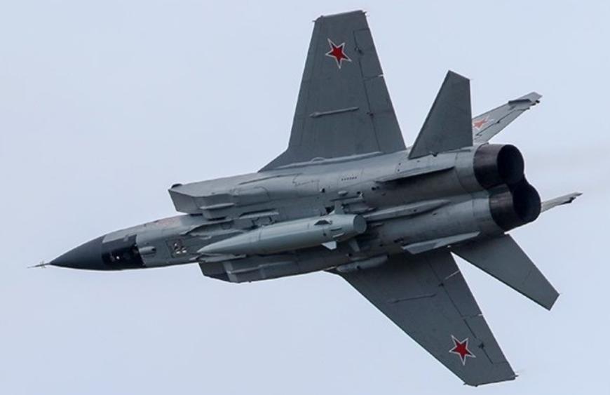 O rachetă hipersonică Kh-47M2 Kinzhal ALBM transportat de un avion Mikoyan MiG-31K. Sursa foto: Kremlin.ru.