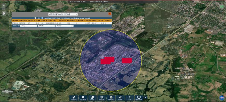 Incendiul de la depozitul de petrol este confirmat și de serviciul de monitorizare FIRMS al NASA, ai cărui senzori au înregistrat temperaturi anormal de ridicate la rafinărie la ora 01:27.