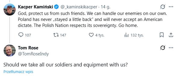Rose „l-a enervat pe unul dintre cei mai buni aliați ai noștri”. "Și Chat GPT ar stabili relații mai bune cu Polonia"