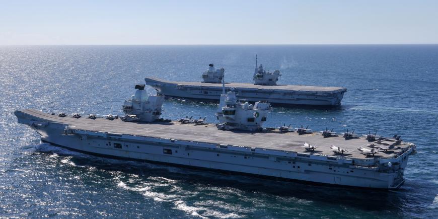 Cele două portavioane britanice HMS Queen Elizabeth și HMS Prince of Wales, navigând pentru prima dată împreună în cadrul unor manevre militare care au avut loc în mai 2021. Foto: Royal Navy