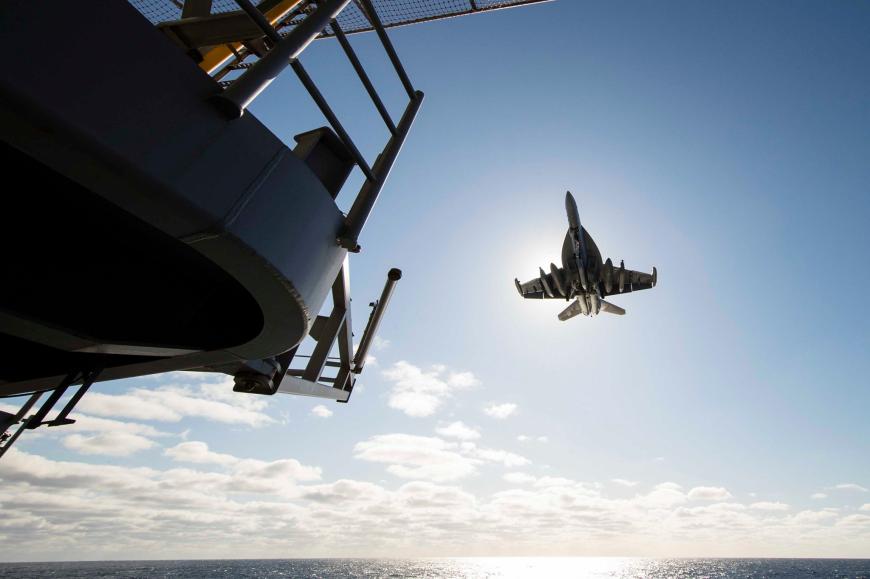O aeronavă EA-18G Growle, pregătindu-se să aterizeze pe portavionul USS Gerald R. Ford. Sursă foto: U.S. Department of Defense (DoD)