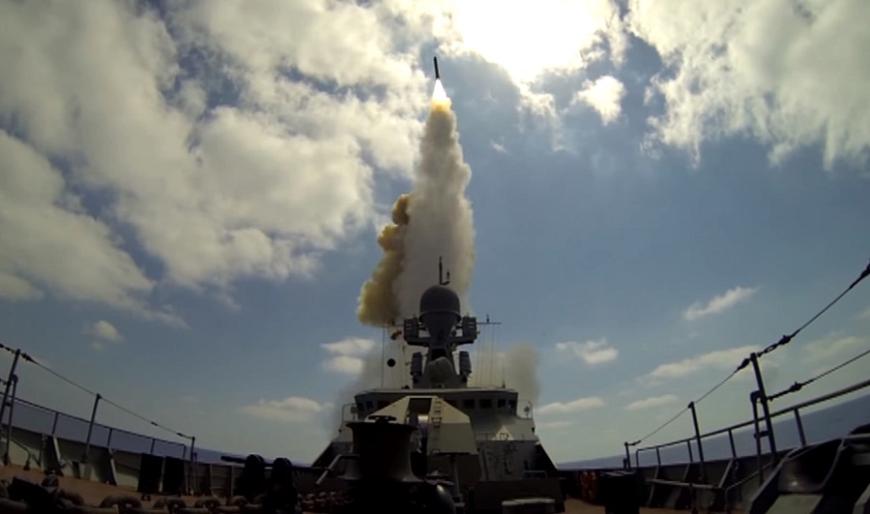 Lansarea unei rachete Kalibr de către o navă de suprafață rusă. Foto: Ministerul Apărării din Rusia