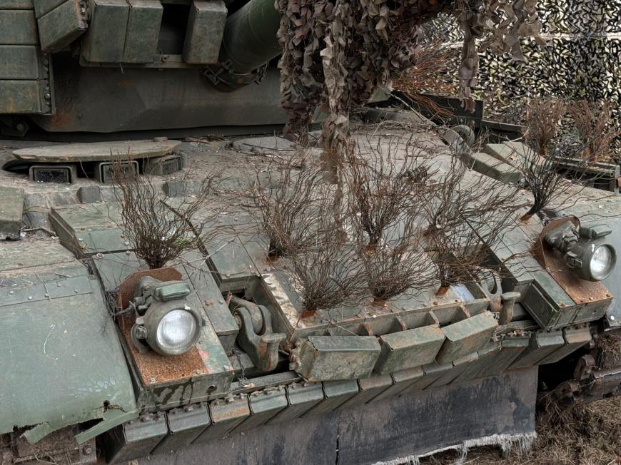 Tancul a fost echipat suplimentar cu o structură superioară de tip cușcă (anti-drone cage) pentru a contracara loviturile de sus și cu grătare metalice dublate de lanțuri deasupra compartimentului motor, zona cea mai vulnerabilă la atacurile cu încărcături cumulative. Această „cușcă” funcționează ca un prim strat de declanșare a rachetelor antitanc transportate de drone, reducând forța de penetrare înainte ca acestea să atingă blindajul propriu-zis al tancului.