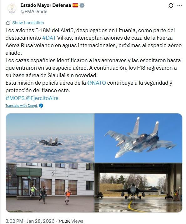 Pentru NATO, aceste incursiuni reprezintă un test constant de reacție. Spania, care deține în prezent comanda misiunii de Poliție Aeriană Baltică, a mobilizat resurse considerabile, incluzând 12 aeronave și aproximativ 200 de militari la baza aeriană Siauliai.