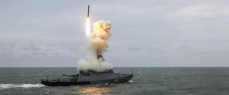 Lansarea unei rachete Kalibr de pe o navă de suprafață a Marinei ruse. Foto: Ministerul Aprării de la Moscova via U.S. Naval Institute
