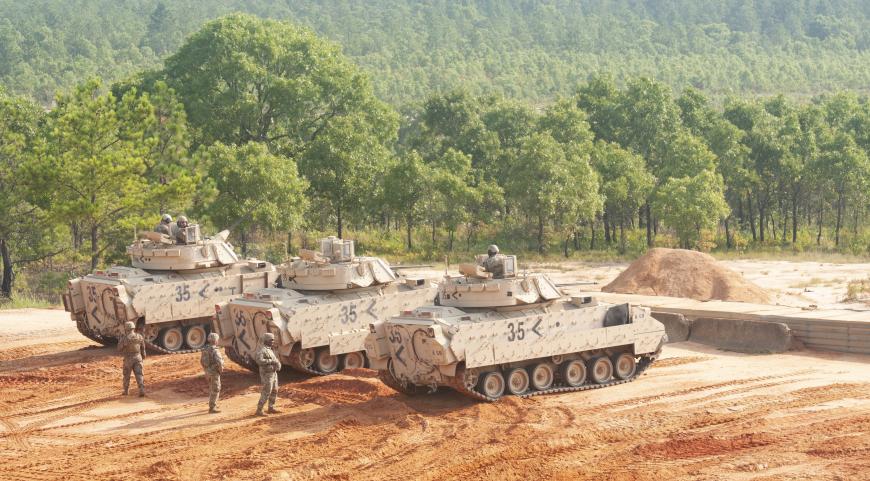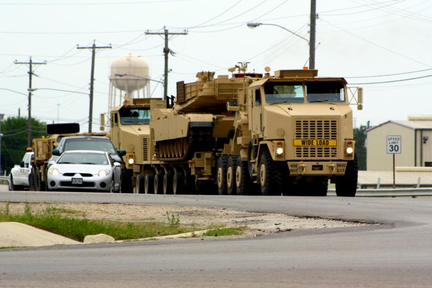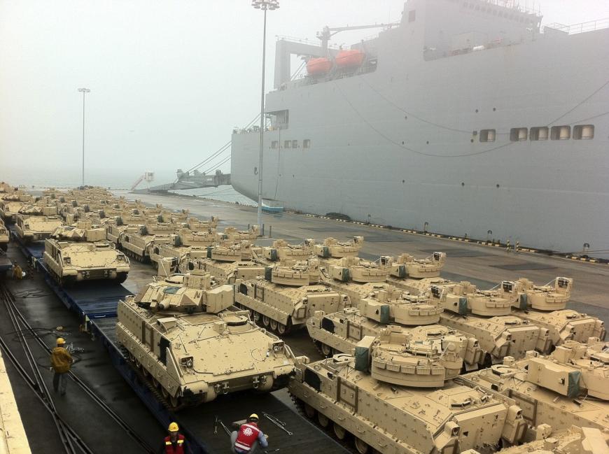 Vehicule de luptă de tip Bradley, în timpul unui transport. Foto: U.S. Army