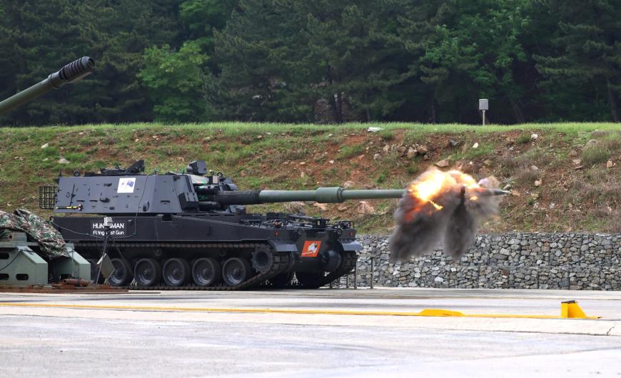 Obuzier autopropulsat de 155 mm de tip K9 Thunder, în timpul unor teste. Photo source: Photo: Australian Department of Defence